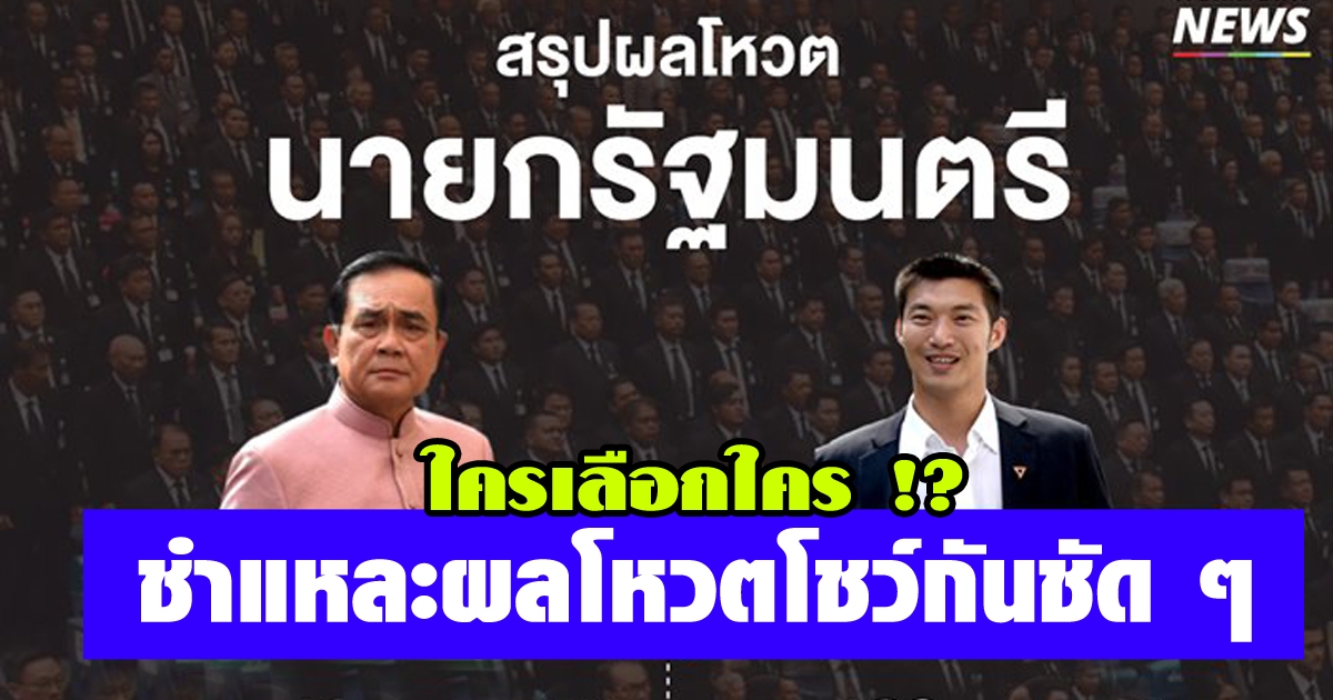 ชำแหละผลโหวต ส ส ส ว โชว ก นช ด ๆ ใครเล อก พล อ ประย ทธ ใครเล อก ธนาธร